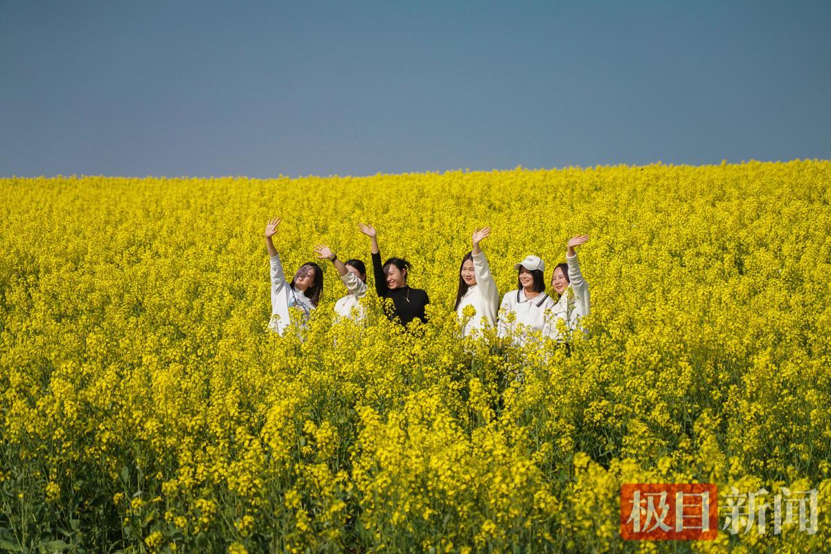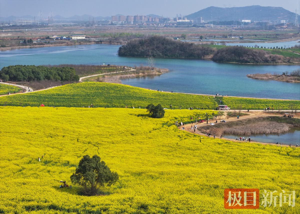 3月12日,极目新闻记者来到位于武汉经开区军山街新团村的状元湖,200多亩油菜花进入盛放期,放眼望去,一片金黄的花海与碧波荡漾的状元湖交相辉映,构成了一幅绝美的春日画卷。不少市民和游客闻香而动,纷纷前来打卡,记录下这“湖光花色两相宜”的限定美景。