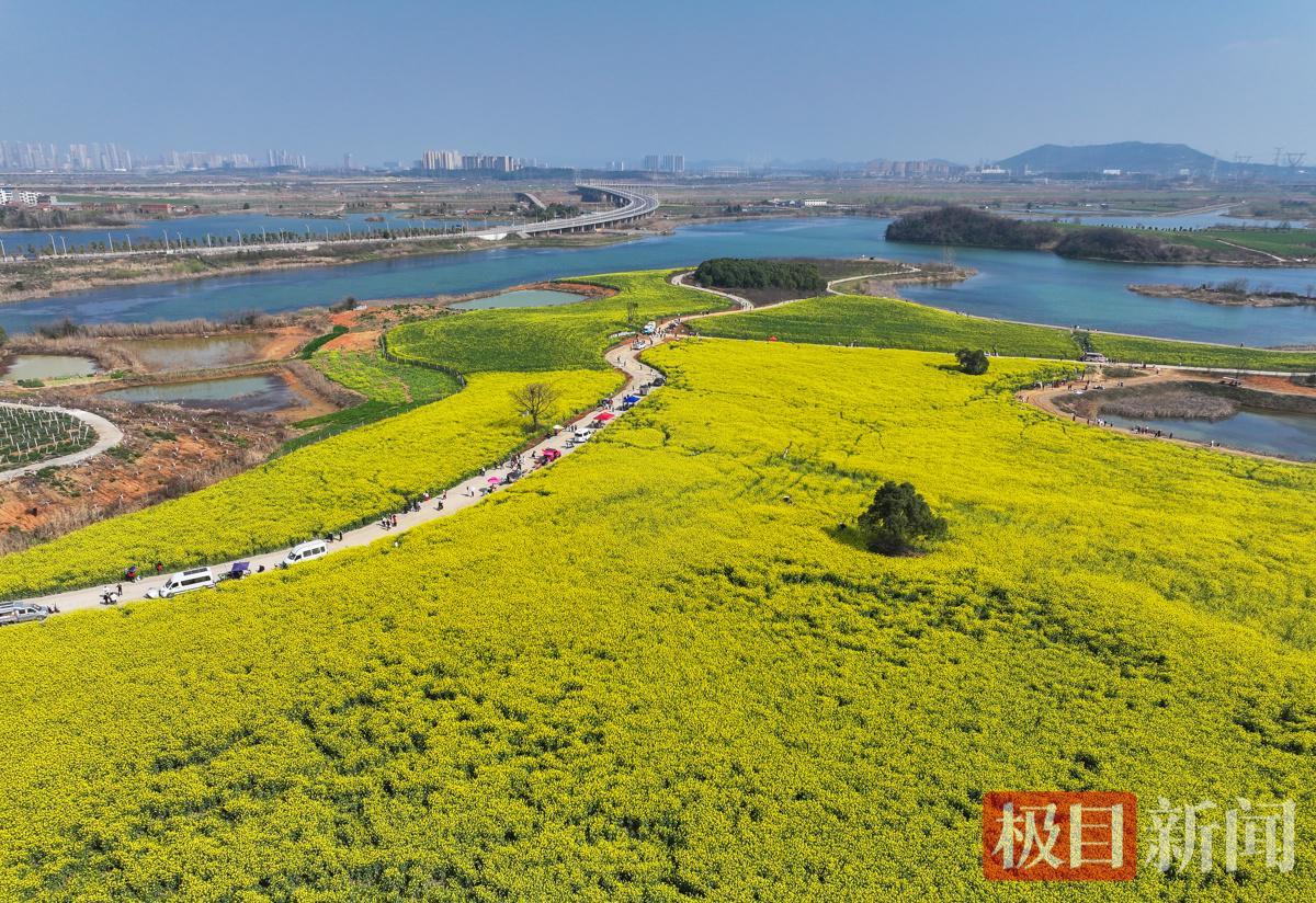 眼前这片美不胜收的花海,数年前这里杂草丛生、垃圾散落,与状元湖的生态禀赋不相匹配,成为周边居民的“心头忧”。新团村党支部书记、村委会主任曾凡涛向极目新闻记者介绍,在武汉经开区军山街道党工委统筹协调、精准施策下,新团村通过平整土地、筛选花种,最终确定播撒油菜籽,实现了“荒地变景观”的环境提升,用精细化举措让城市“边角料”焕发新生。