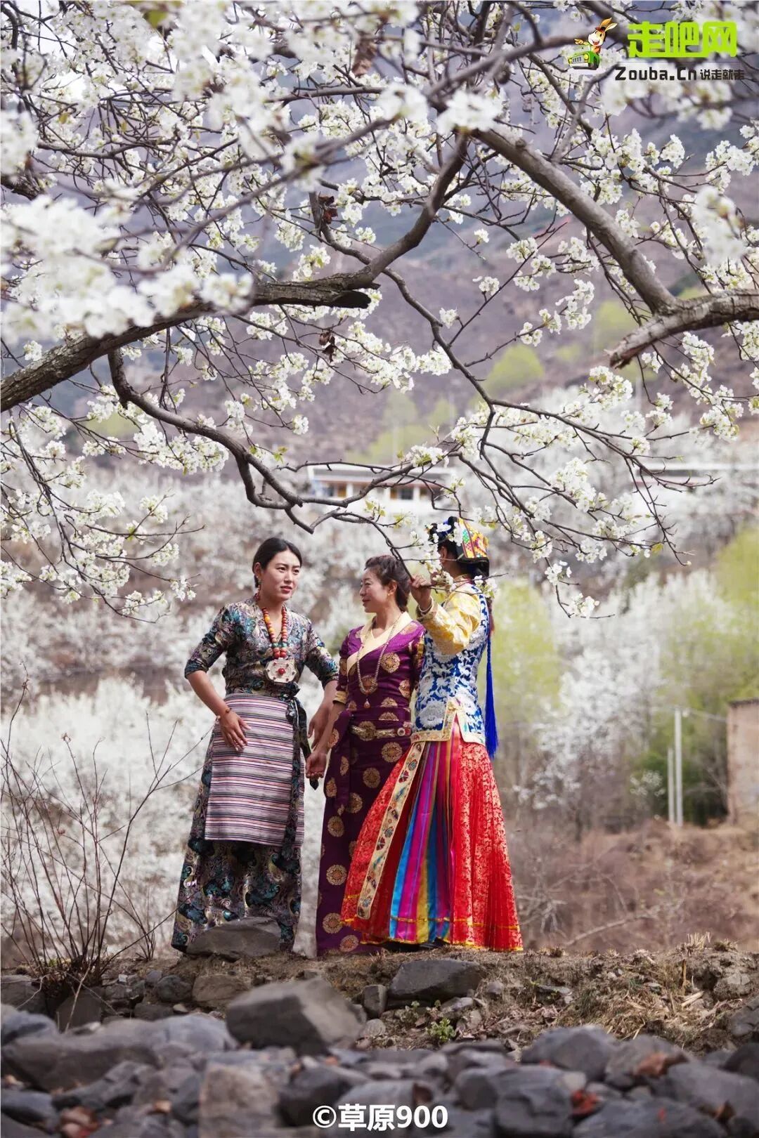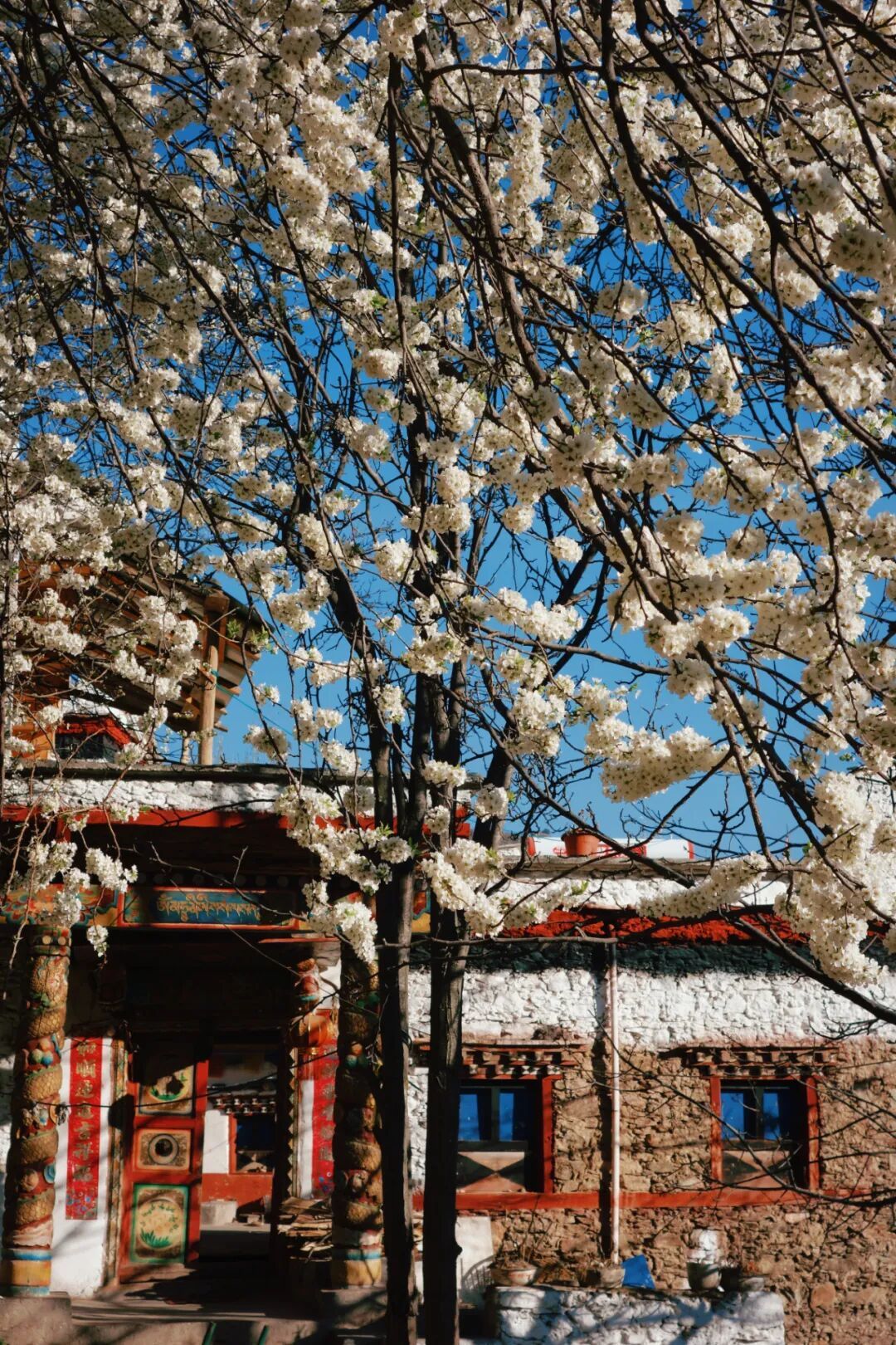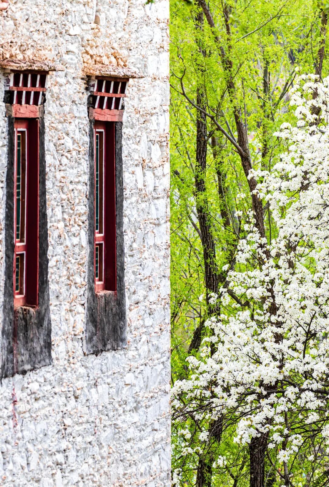 白的梨花、青的麦苗、红的藏寨,