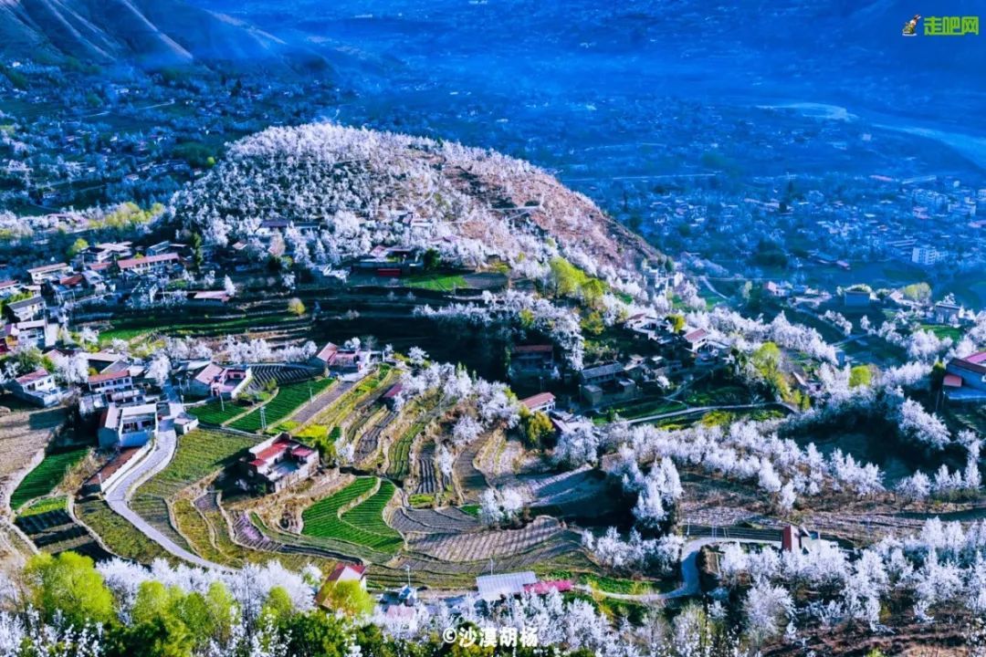 一绝是山顶的雪花与河谷的梨花竞相争艳;