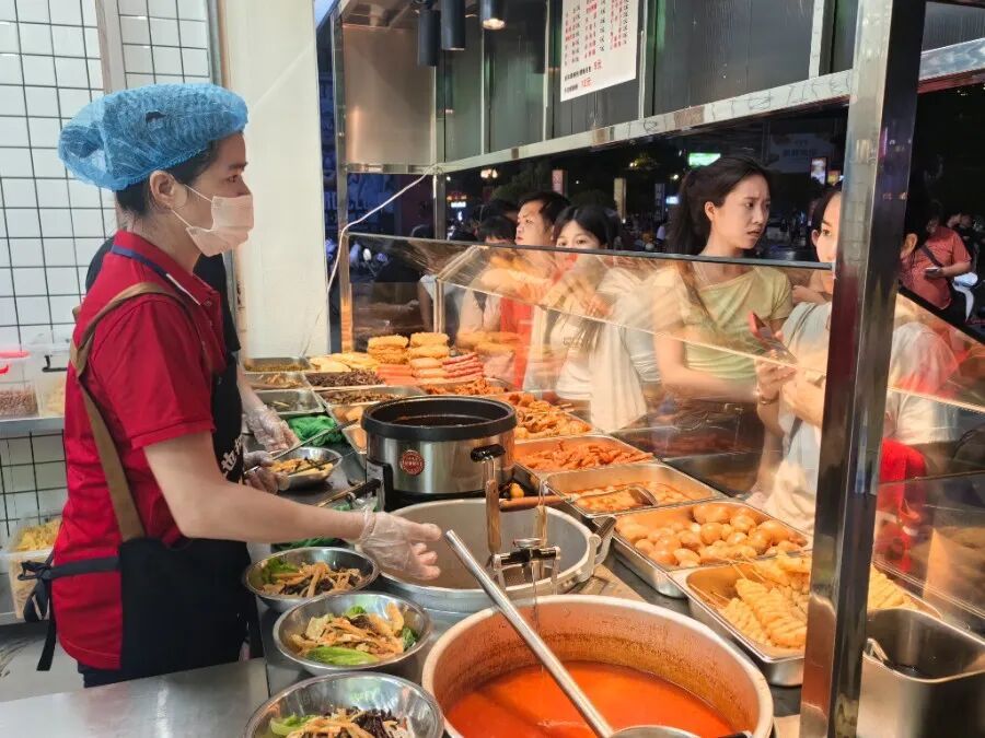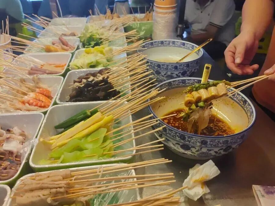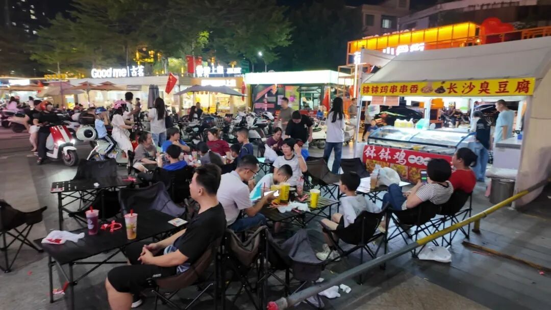 美食街更是人声鼎沸,每张桌子都坐得满满当当,食客们分享着热腾腾的烧烤、香气四溢的钵钵鸡,小城温情在夜色中流淌。