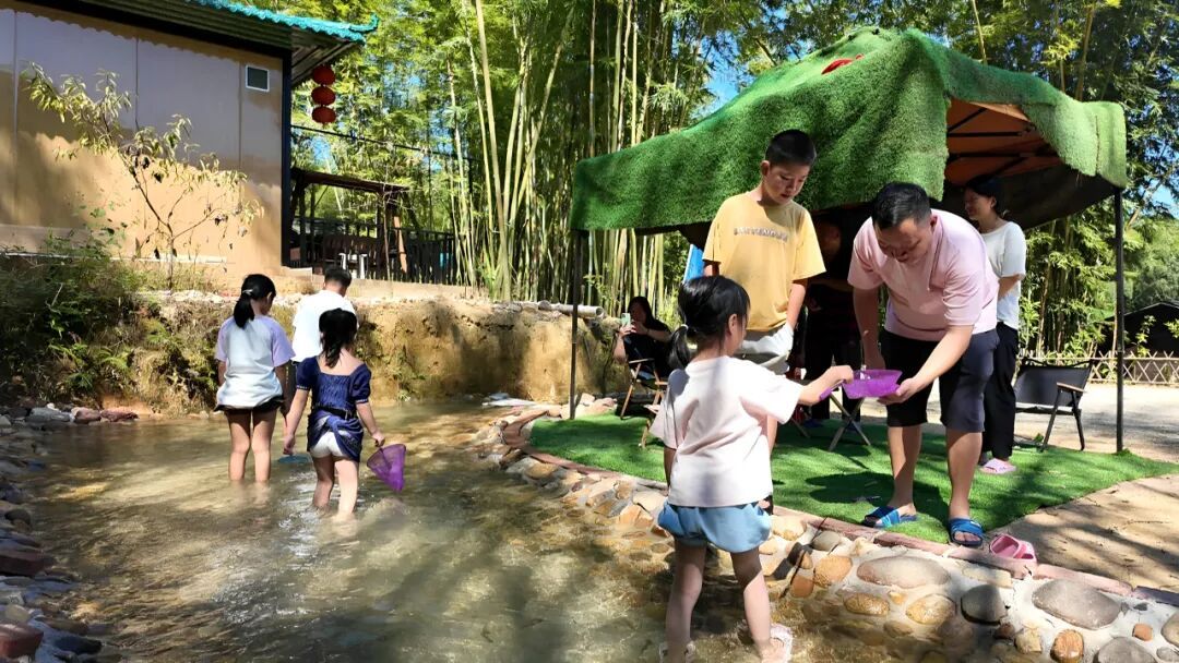 不止于此,“红色广宁”精品线路吸引亲子家庭与研学团队,粤桂湘边纵队纪念馆里听革命故事,竹海徒步、古水河竹筏游赏生态美景,红色景区接待游客9.784万人次。在歌声悠扬的“四季村晚”舞台上,16组歌手唱响家乡恋曲;中秋游园会里,市民集印章兑竹制工艺品,800 份奖品传递“竹乡情”。